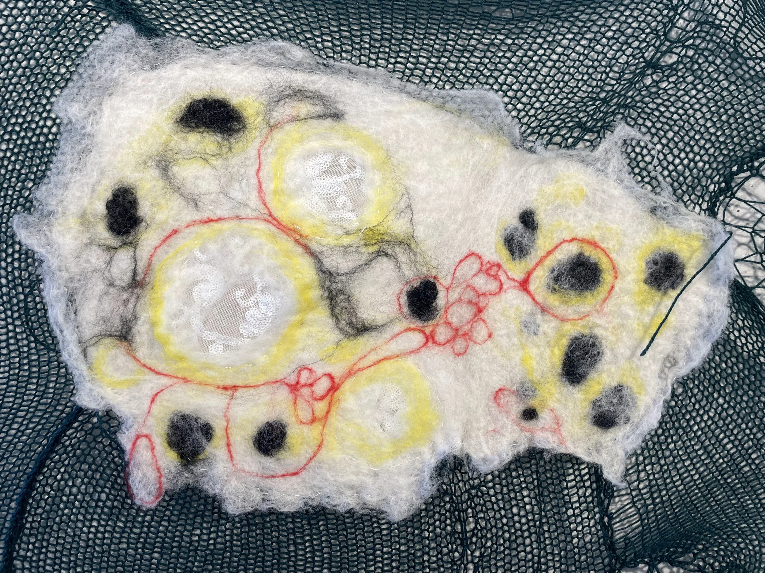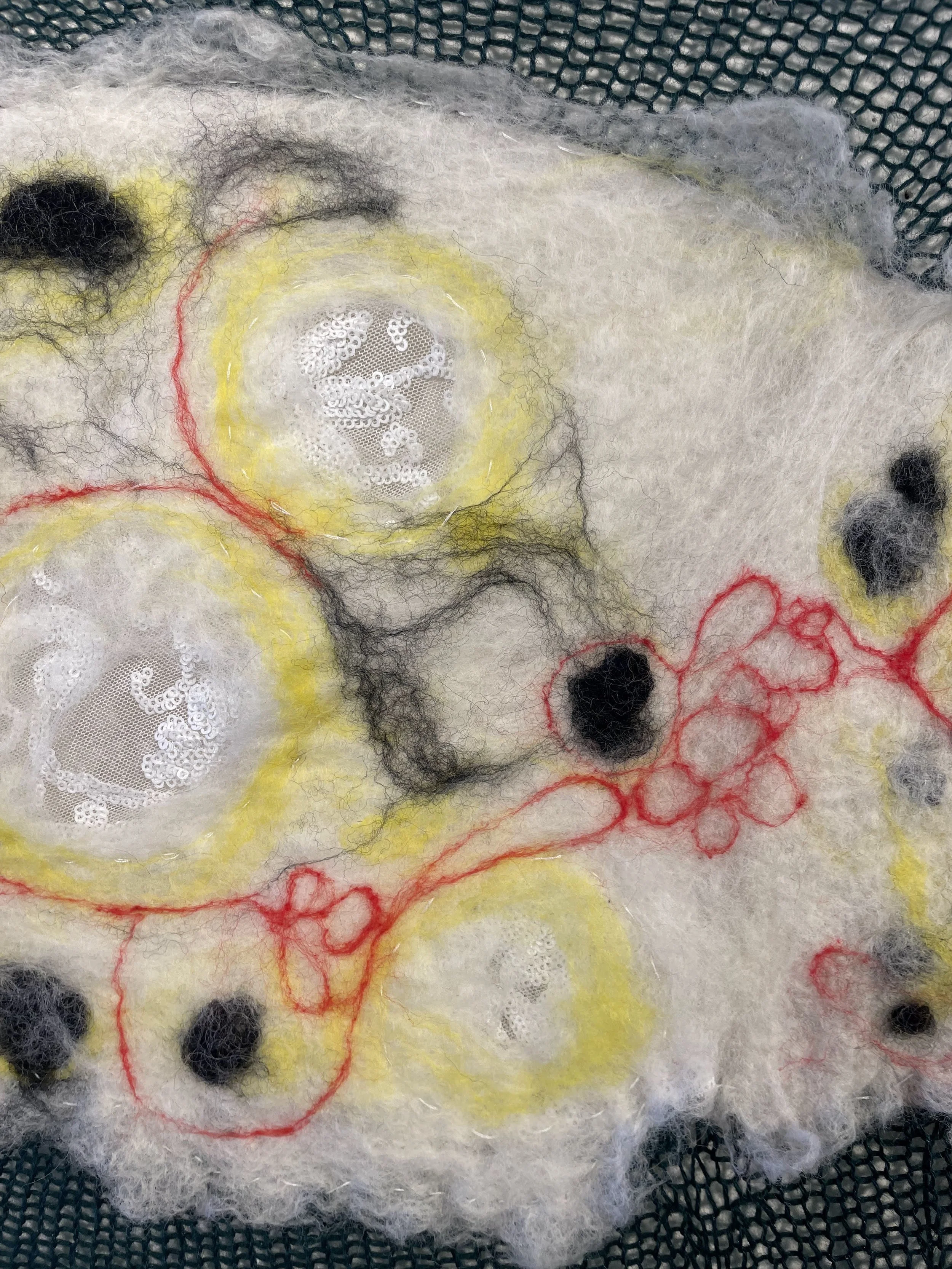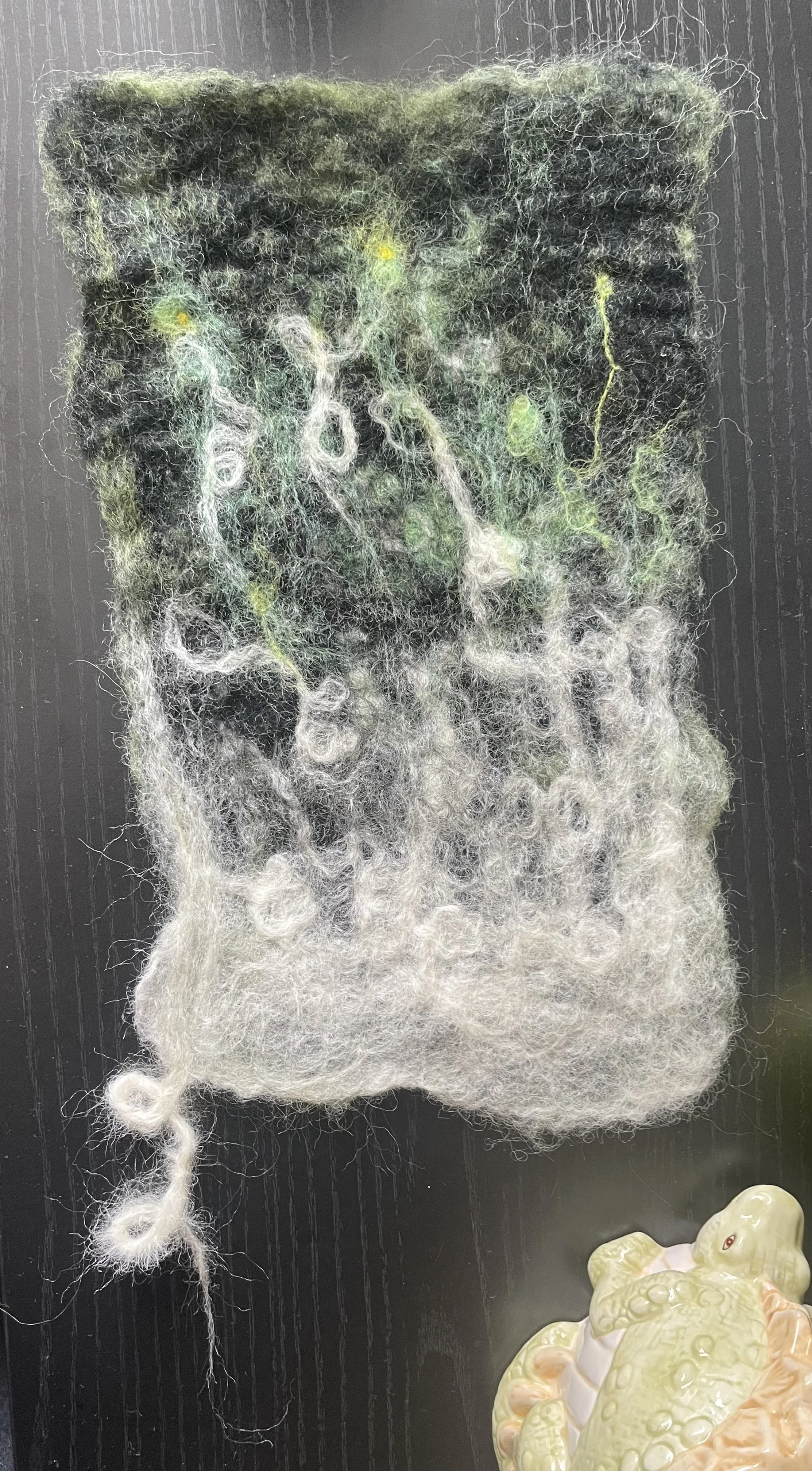 I have explored textiles in a variety of forms such as silkscreening, needle and wet felting, dyeing, crochet, knitting, and simple weaving. Fiber allows me to produce material and process-based pieces as I experiment with form.