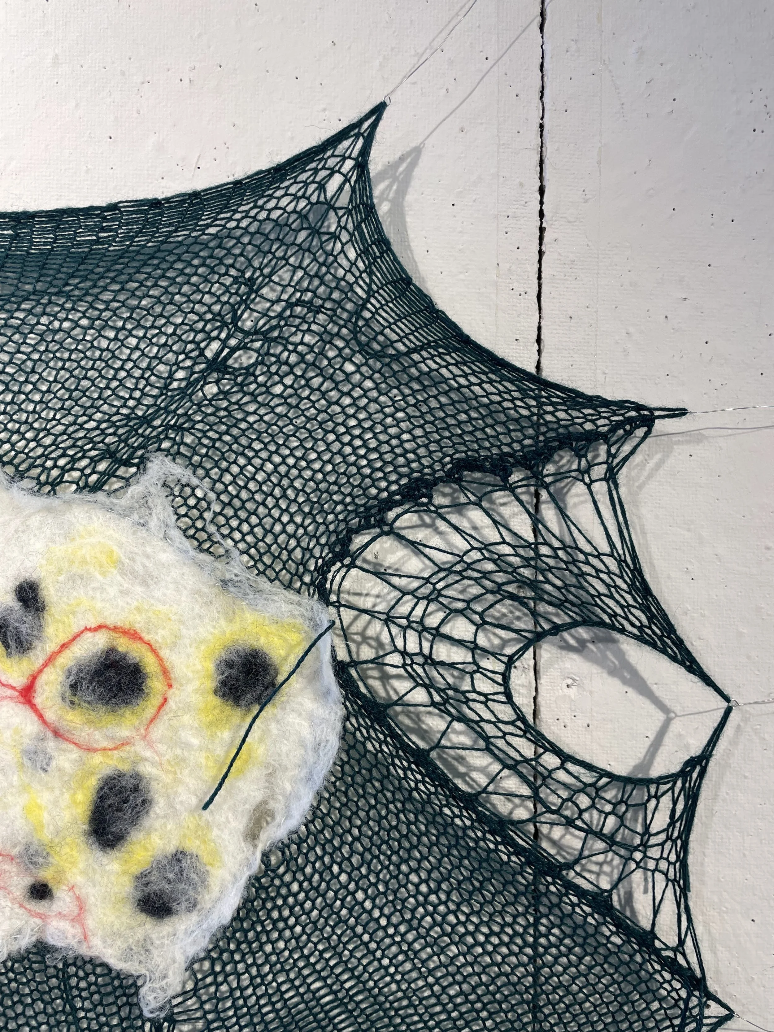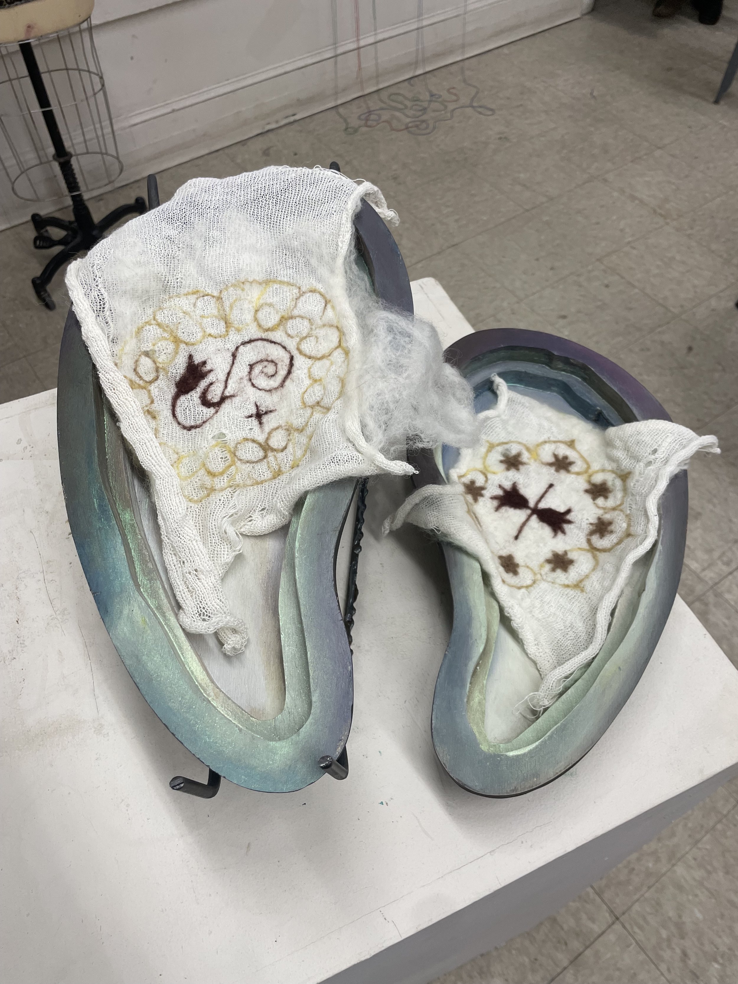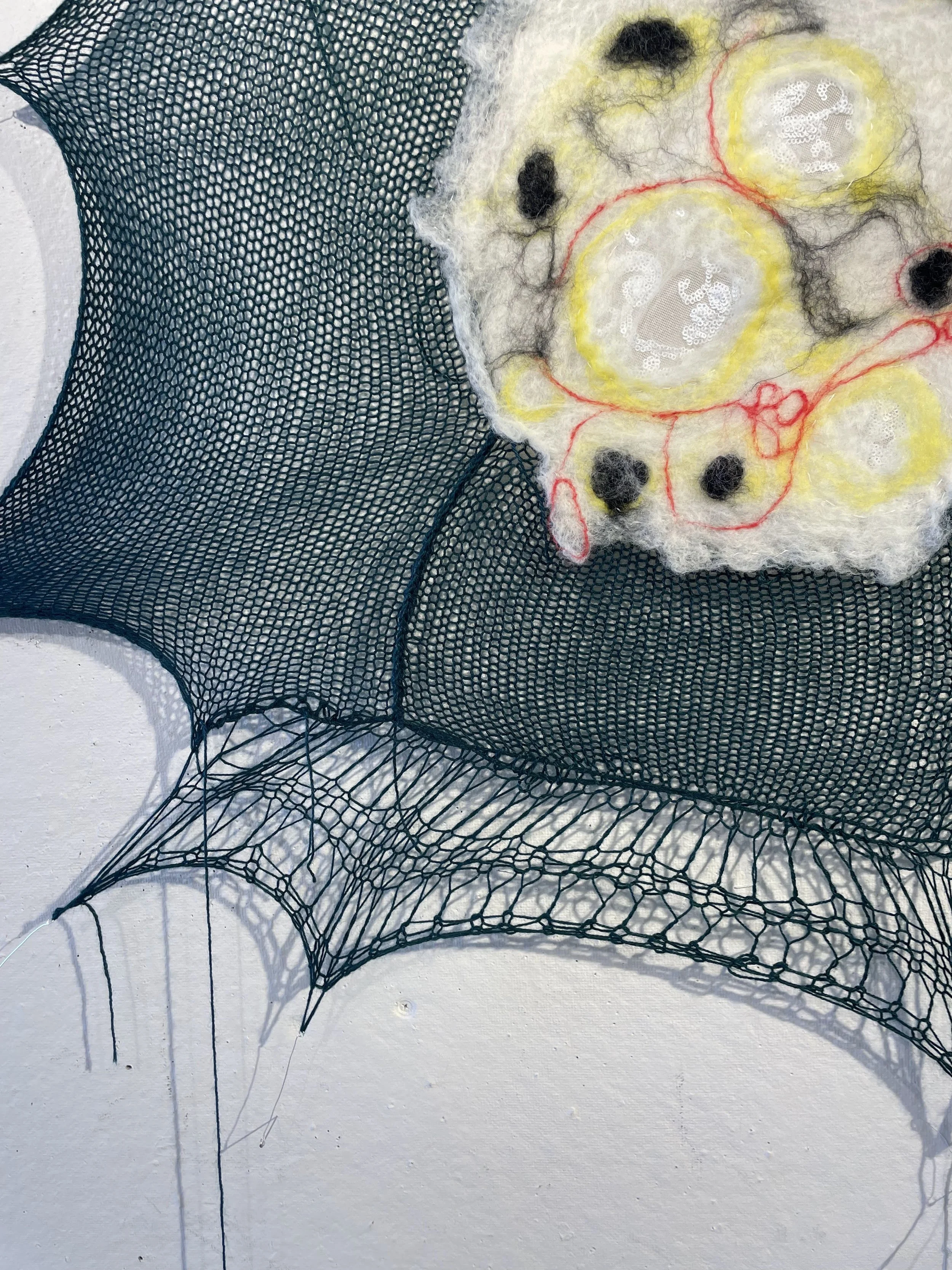 I have explored textiles in a variety of forms such as silkscreening, needle and wet felting, dyeing, crochet, knitting, and simple weaving. Fiber allows me to produce material and process-based pieces as I experiment with form.